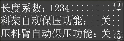 按鍵7:料架自動保壓功能:料架油壓保護功能,可以通過壓力表設置上限和下限,該功能打開時,料架漲緊會自動啟動(油壓低于下限時),關閉則不具備此功能。此為內部設置,客戶不得隨意修改,出廠時,此功能為打開狀態。