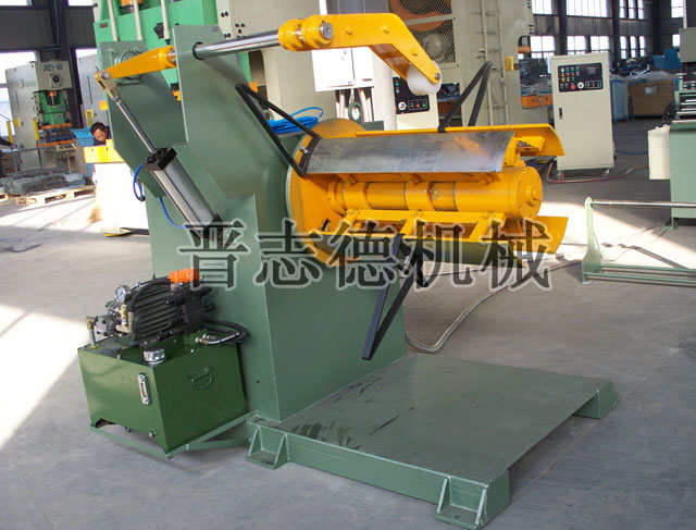 而油壓重型材料架則是晉志德機械針對重型厚板卷料放料、開卷而專門研發(fā)、生產(chǎn)的一種高效實用型材料架,它是傳統(tǒng)重型材料架的升級改進型,其將手搖漲縮脹緊結(jié)構(gòu)改用油壓站式油壓漲縮方式,并在材料架機架上加裝壓料裝置,對卷料進行實時的壓時,通過上述改進可快速實現(xiàn)卷料的脹緊和穩(wěn)定高效的開卷。