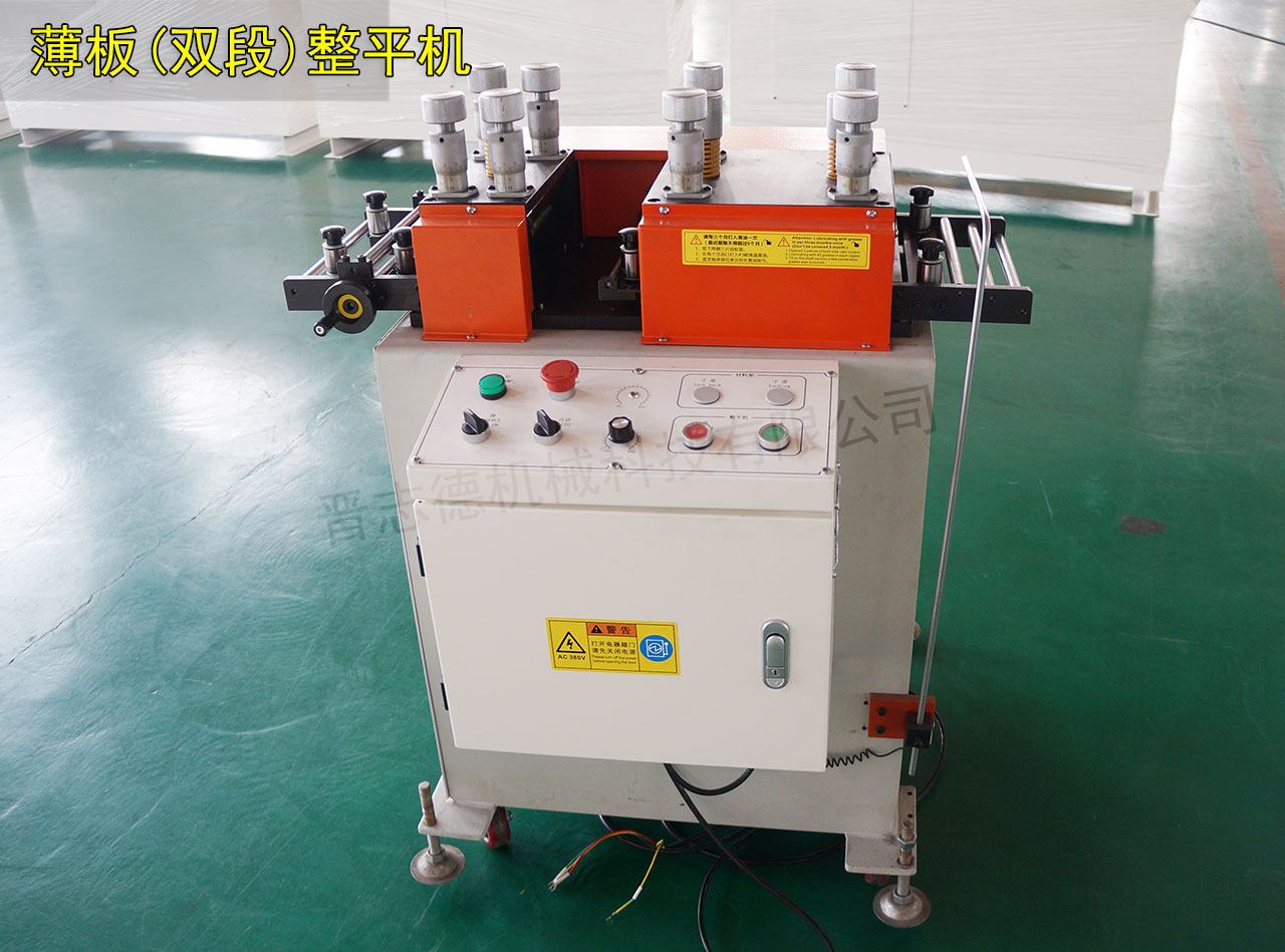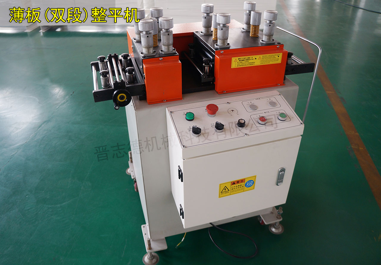 晉志德雙段式精密整平機的出現就從根本上解決了此種不足之處,其通過在一個整平機構中設置兩組整平組件,從而實現對材料的多次間歇性整平,而且每組整平組件中作為主動可調的上整平滾輪的數目逐步增加,大排距粗矯,小排距精矯,從而達到高精密整平之需求。